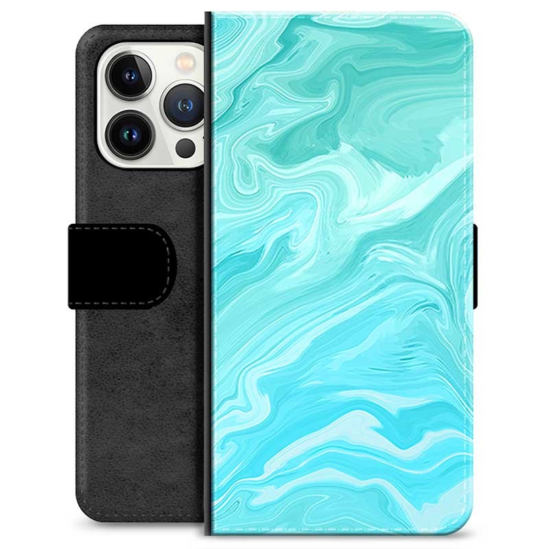 iPhone 13 Pro Premium Schutzhülle mit Geldbörse - Blauer Marmor