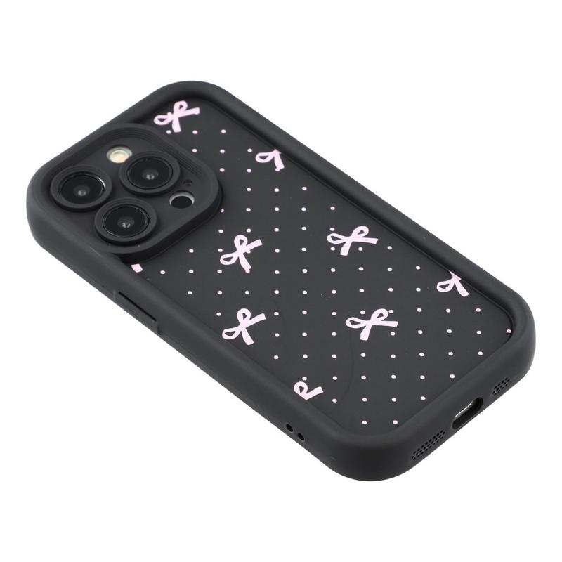 iPhone 13 Pro Max Stilvolle stoßfeste TPU-Hülle mit erhöhten Kanten - Schwarz / Gepunktete Schleife