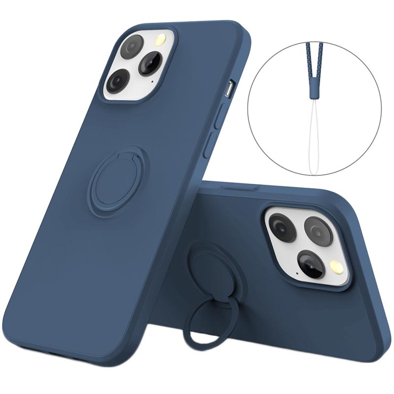 • Liquid Silikonhülle mit Ringhalterung für iPhone 13 Pro Max - mit Trageriemen