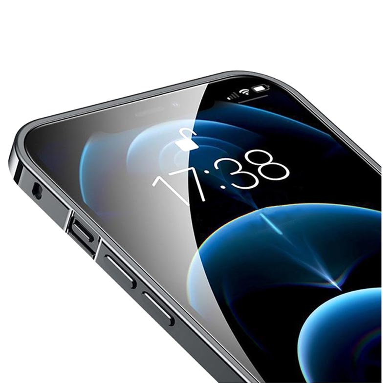 Verstärken Sie Ihr iPhone 13 Pro Max mit dieser ultimativen Hülle, die eine Kombination aus einem Metallbumper und einer Kunststoffrückseite darstellt.