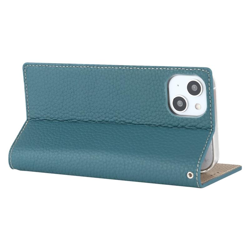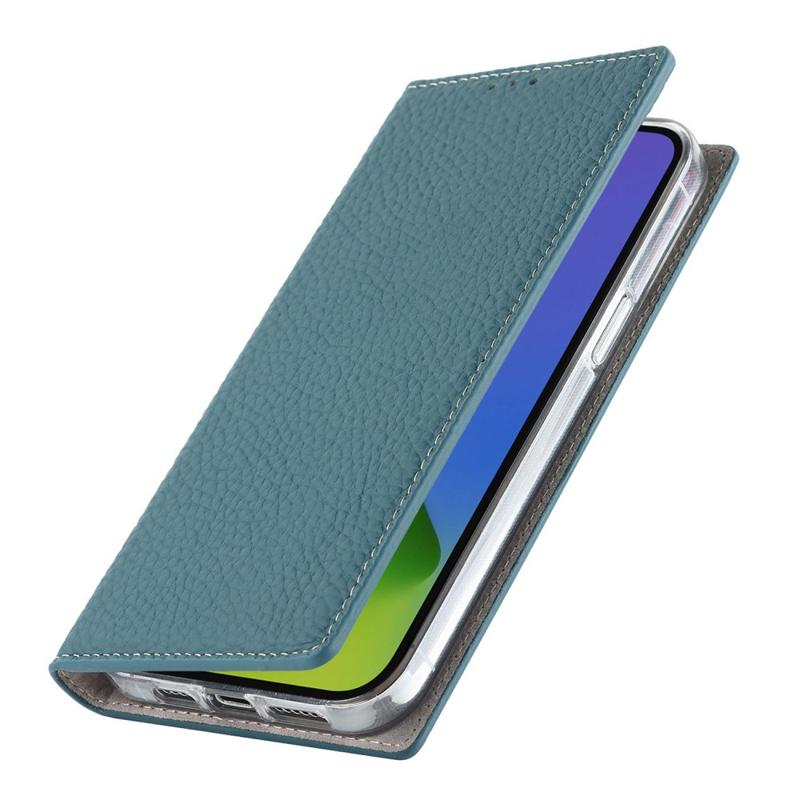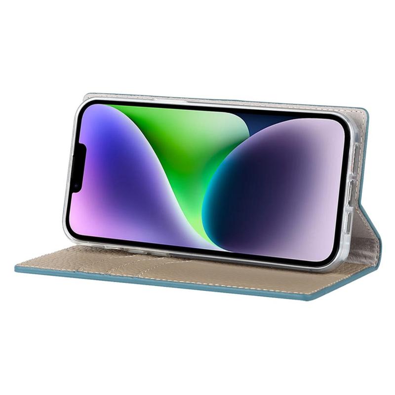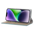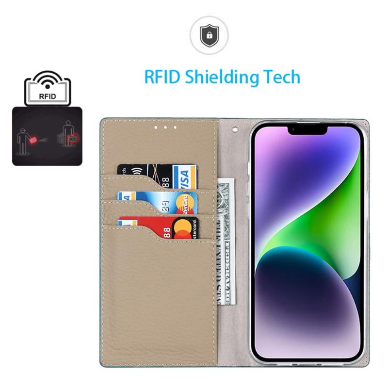 iPhone 14 Lederhülle mit Geldbörse und RFID - Hellblau