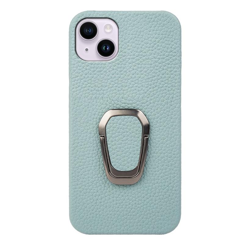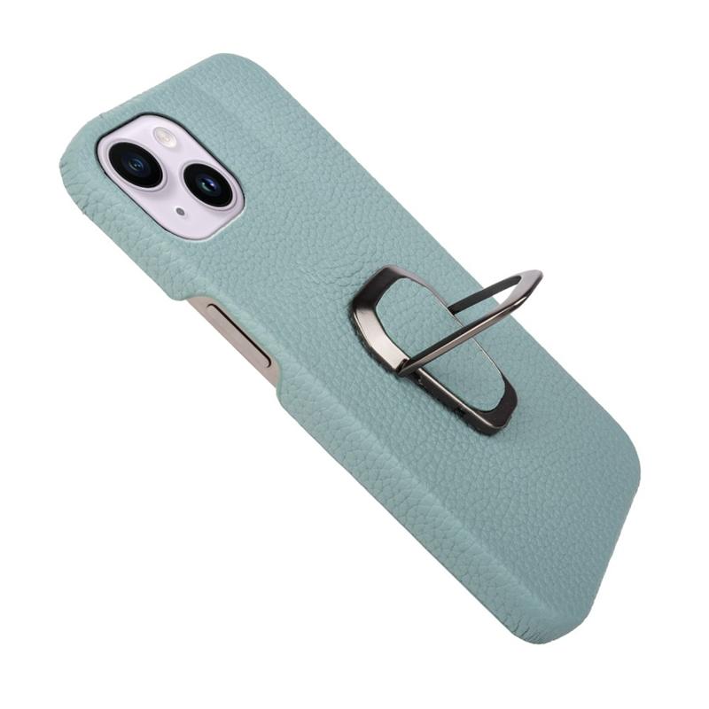 iPhone 14 Plus Leder Beschichtet Hülle mit Ringhalterung - Cyan