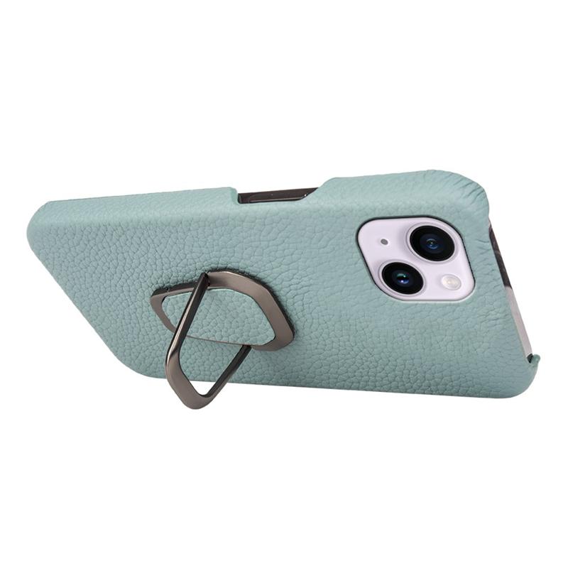 • For iPhone 14 Plus Genuine Leather Coated PC Protective Phone Cover Ring Holder Kickstand Design Litchi Texture Non-Slip Shockproof Case - Exquisite genuine leather coated PC back shell, durable usage and solid protection - Litchi texture genuine leather provides an exquisite and high-end look for the phone - The ring kickstand design allows you to have a hands-free viewing, one hand operating is also unobstructed - Not-fully-hemming design for easy access to all ports and controls, also for fast heat dissipation - Ultra-thin body, easy to hold well in your hand - Raised lip protection keeps the camera lens protected on a flat surface - Perfect fit, hassle-free on-off installation/removal