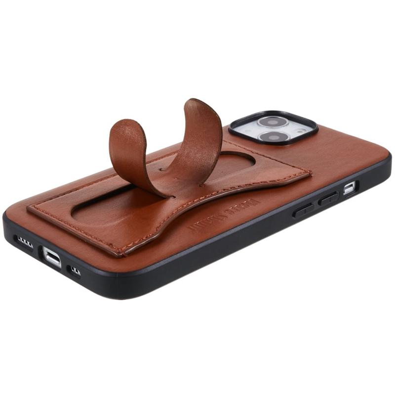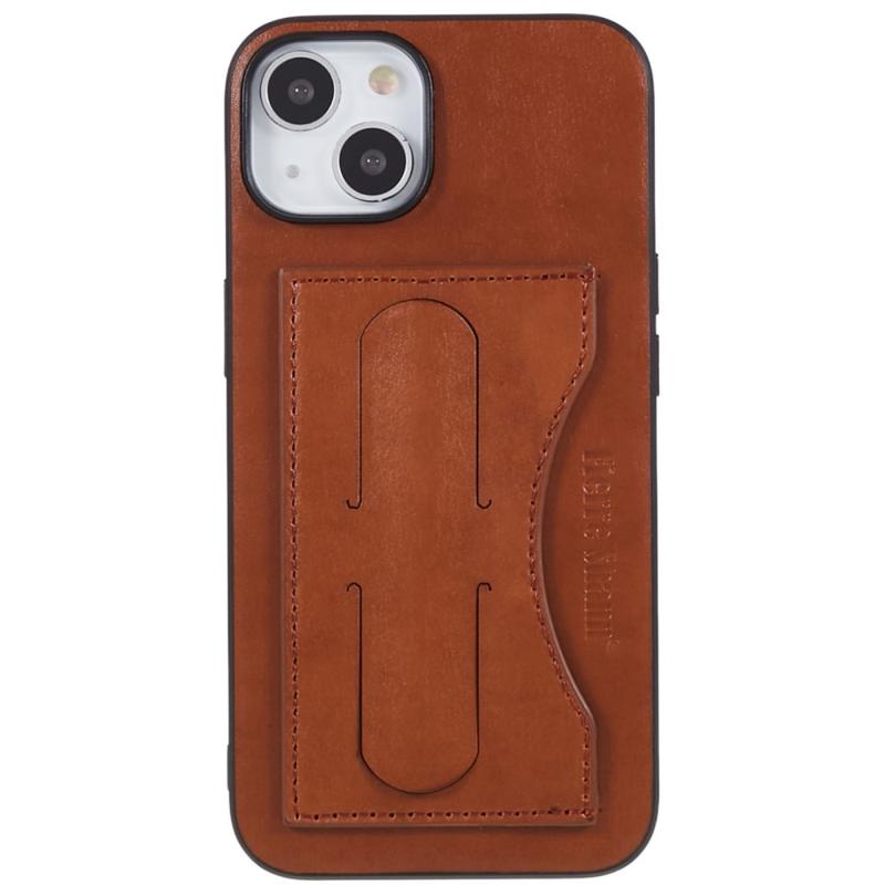 iPhone 14 Plus Beschichtet Cover mit Kartenschlitz und Ständer - Braun
