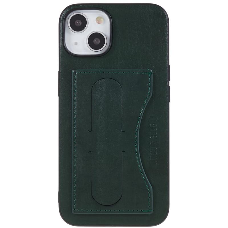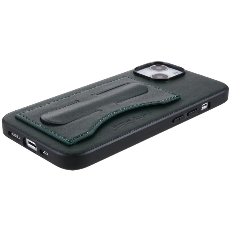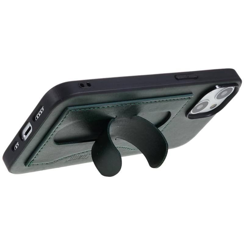 iPhone 14 Plus Beschichtet Cover mit Kartenschlitz und Ständer - Grün
