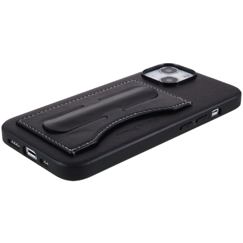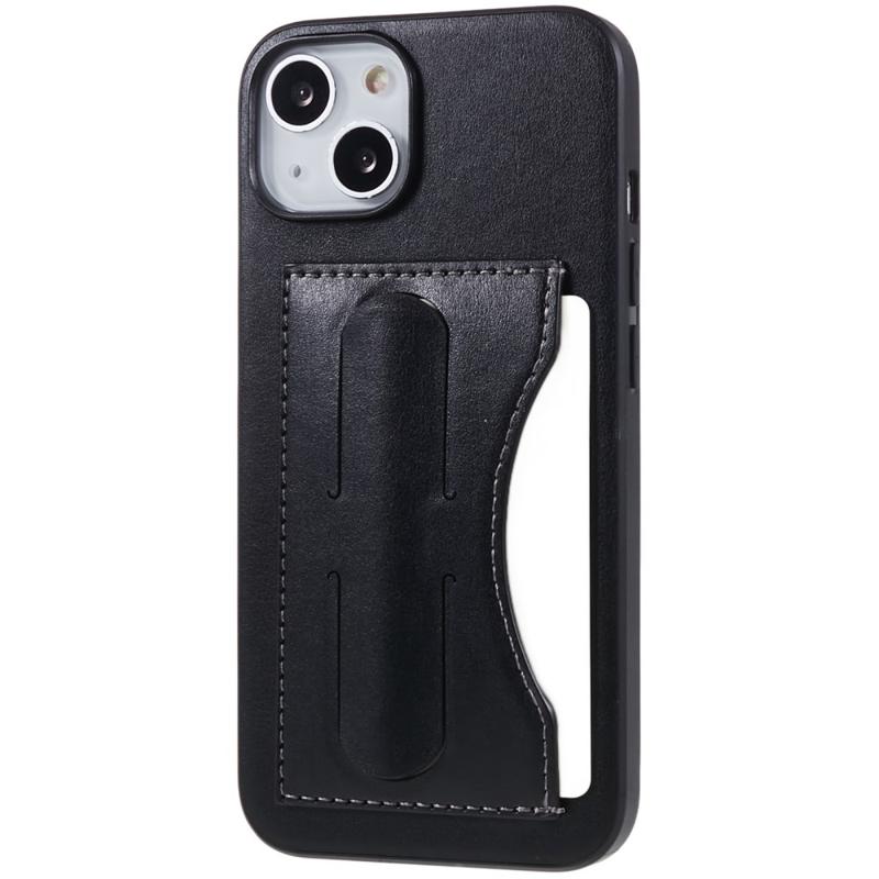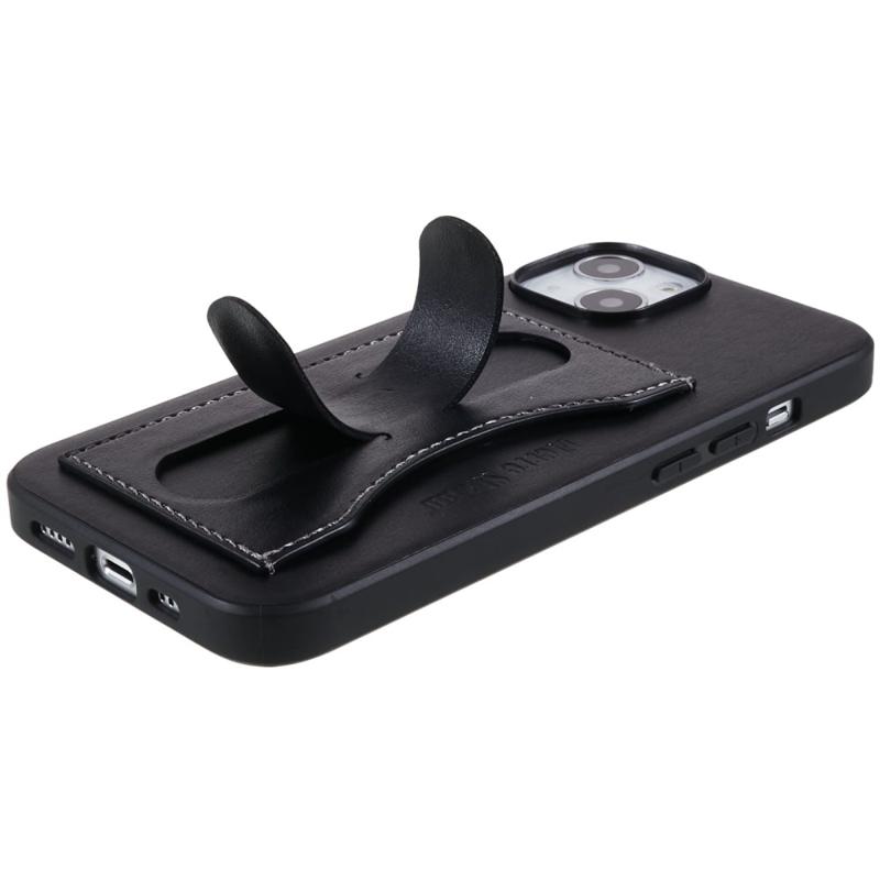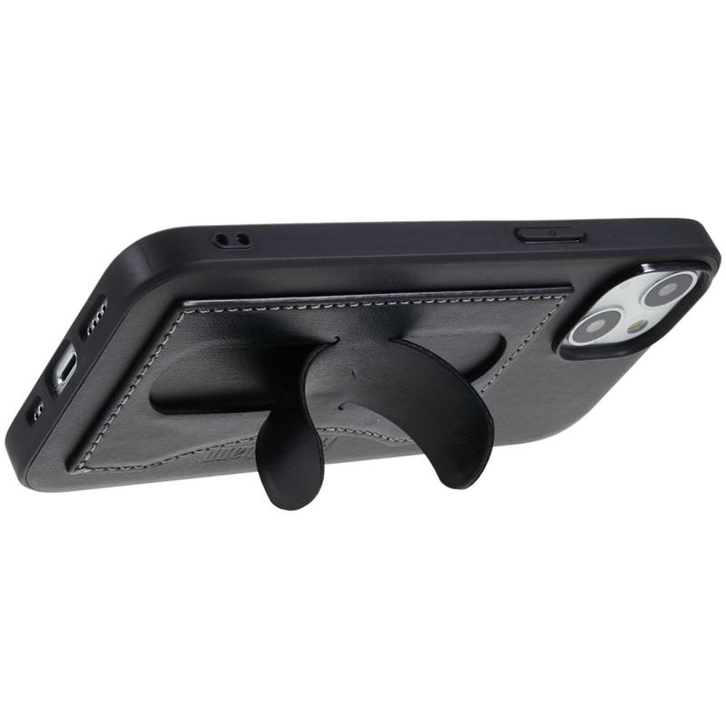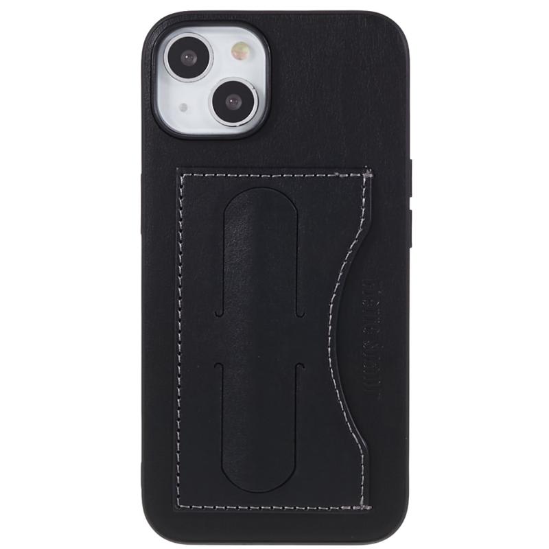 iPhone 14 Plus Beschichtet Cover mit Kartenschlitz und Ständer - Schwarz