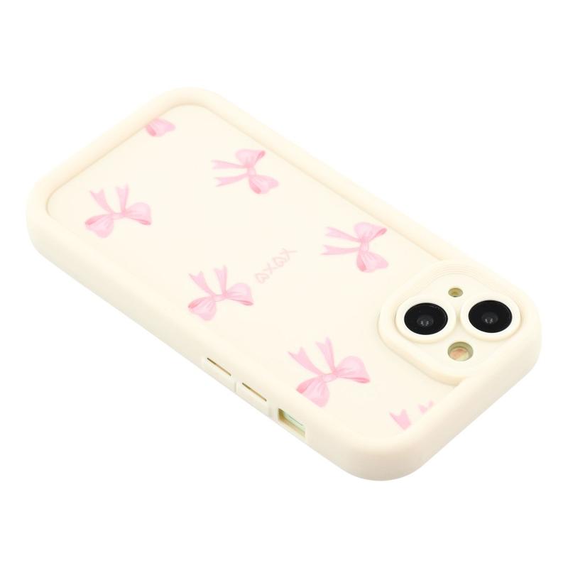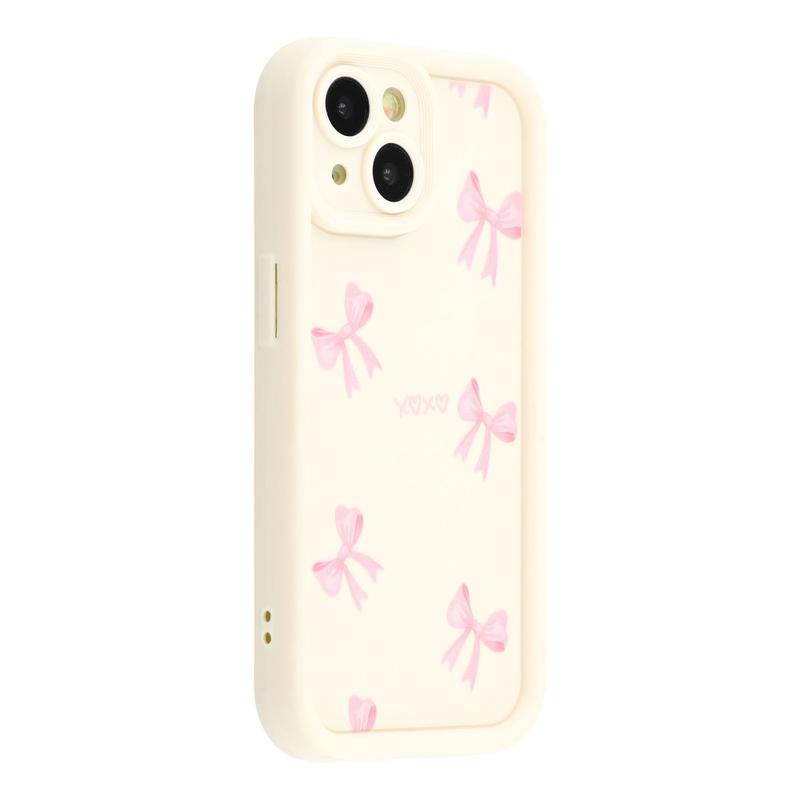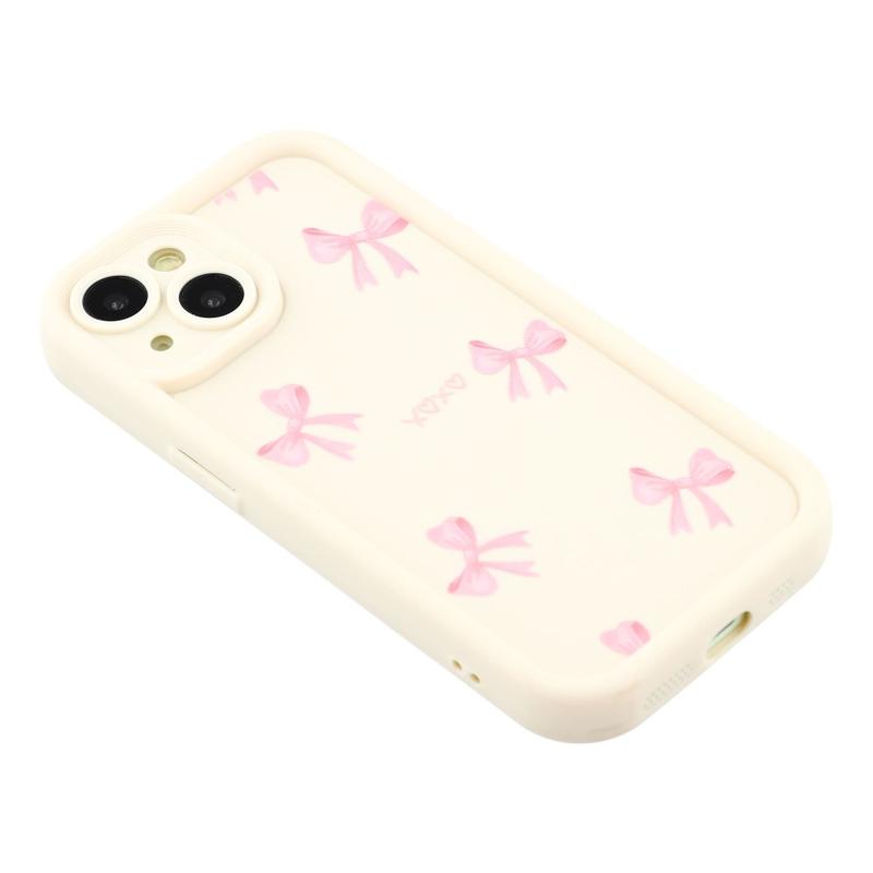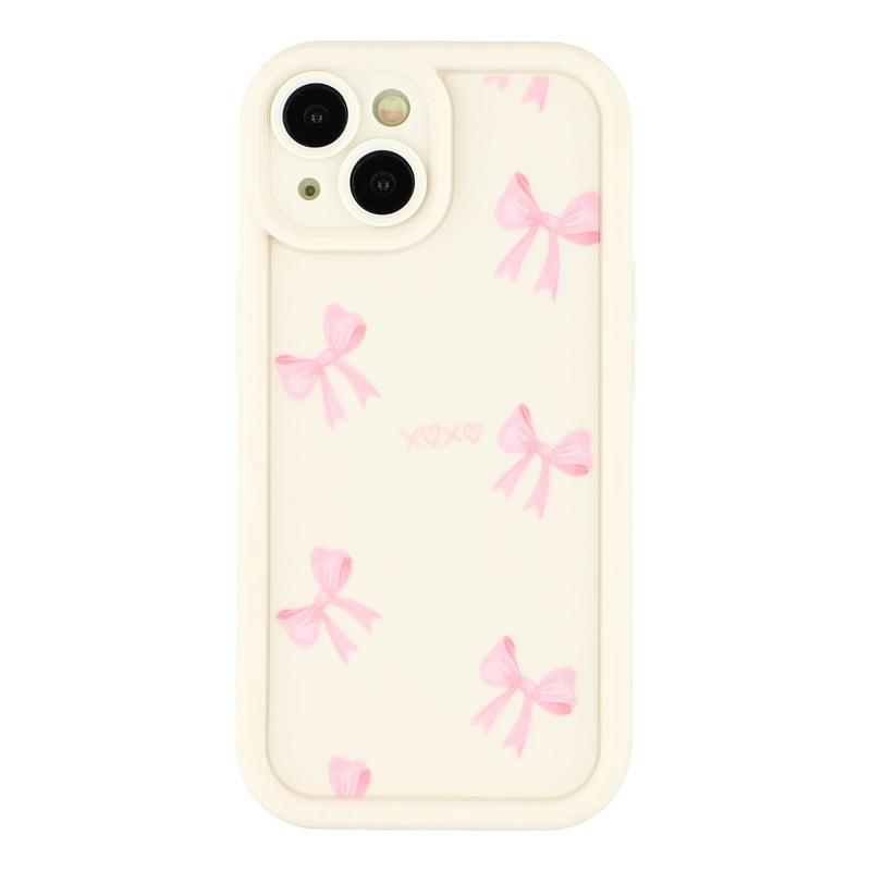 iPhone 14 Plus Stilvolle stoßfest TPU-Hülle mit erhöhten Kanten - Weiß / Schleife