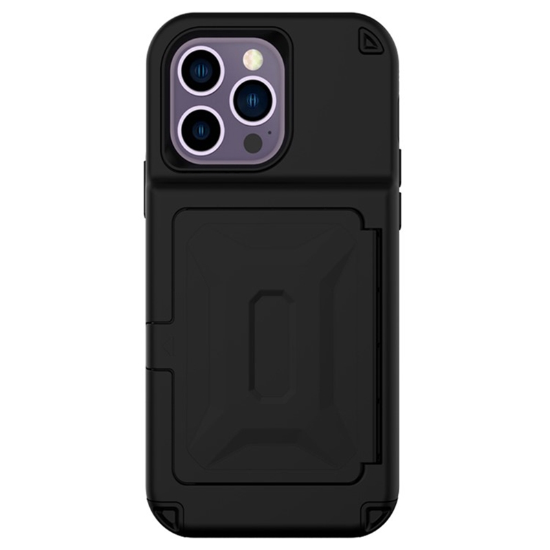 • For iPhone 14 Pro Cardcase Series Kickstand PC + TPU Case Mirror Function Card Holder Thickened Phone Cover - Made of premium PC + TPU material, solid and durable - Back card holder to hold your essential card for necessary - Designed with an acrylic mirror, convenient for checking your makeup - Kickstand design is for convenient free-hands use when watching movies or reading - All-wrapped edge and back to defend against bumps, drop, and scratches - Precise cut-outs and openings, with easy access to all features