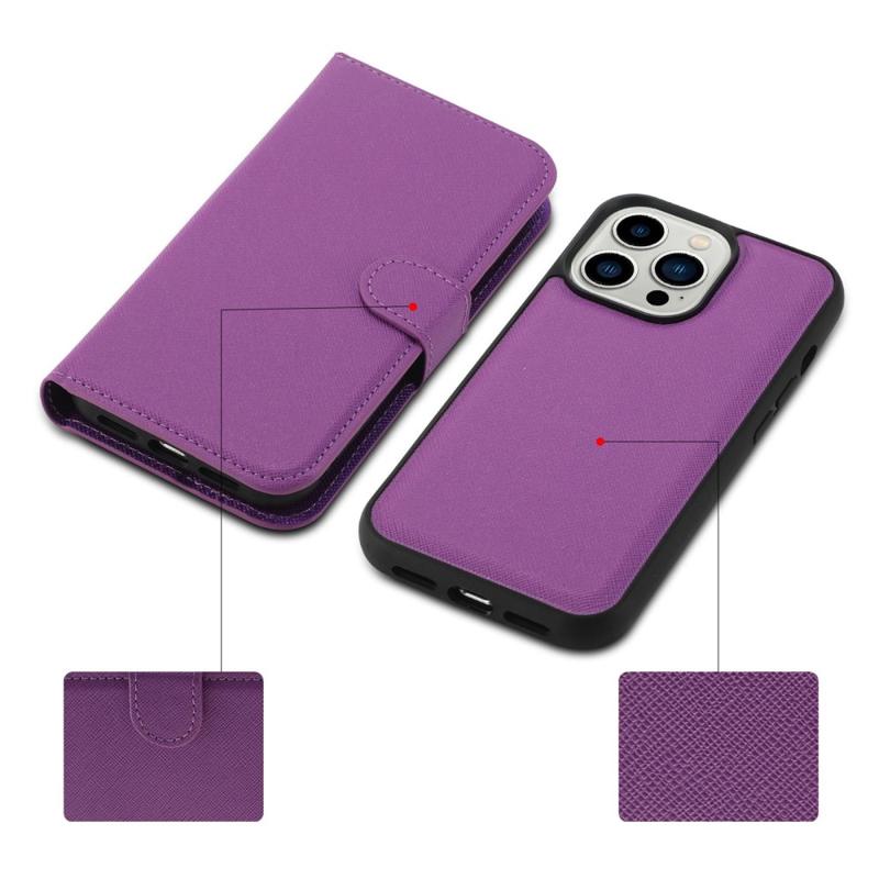 For iPhone 14 Pro Detachable TPU Back Case Cross Texture PU Leather Drop-proof Cover Flip Stand Wallet Shell