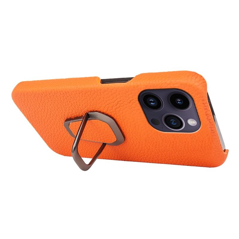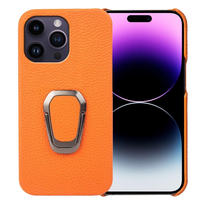 • For iPhone 14 Pro Max Genuine Leather + Hard PC Protective Shell Litchi Texture Ring Kickstand Anti-Drop Phone Cover - Exquisite genuine leather coated PC back shell, durable usage and solid protection - Litchi texture genuine leather provides an exquisite and high-end look for the phone - The ring kickstand design allows you to have a hands-free viewing, one hand operating is also unobstructed - Not-fully-hemming design for easy access to all ports and controls, also for fast heat dissipation - Ultra-thin body, easy to hold well in your hand - Raised lip protection keeps the camera lens protected on a flat surface - Perfect fit, hassle-free on-off installation/removal