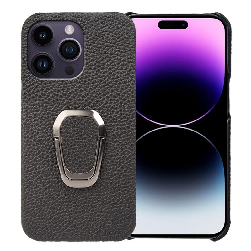 • For iPhone 14 Pro Max Genuine Leather + Hard PC Protective Shell Litchi Texture Ring Kickstand Anti-Drop Phone Cover - Exquisite genuine leather coated PC back shell, durable usage and solid protection - Litchi texture genuine leather provides an exquisite and high-end look for the phone - The ring kickstand design allows you to have a hands-free viewing, one hand operating is also unobstructed - Not-fully-hemming design for easy access to all ports and controls, also for fast heat dissipation - Ultra-thin body, easy to hold well in your hand - Raised lip protection keeps the camera lens protected on a flat surface - Perfect fit, hassle-free on-off installation/removal