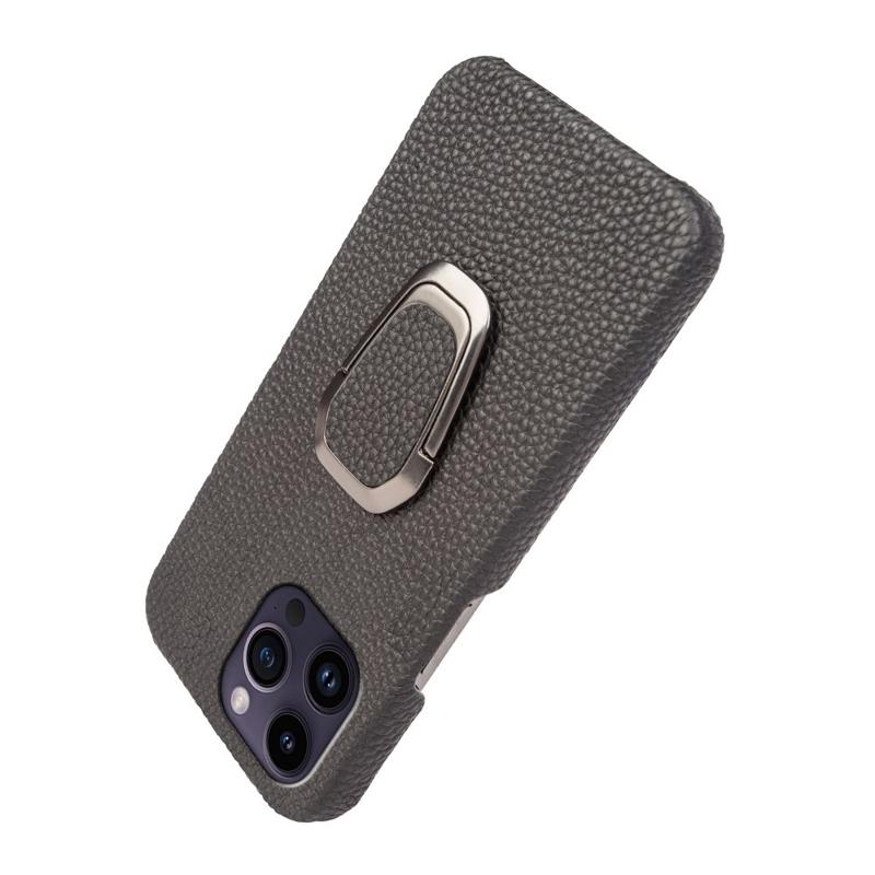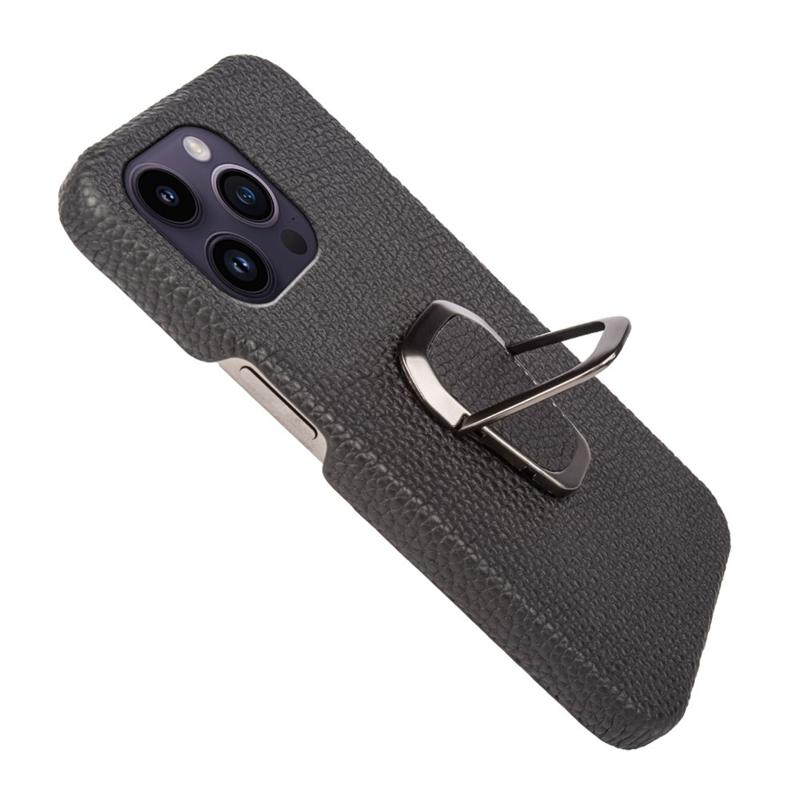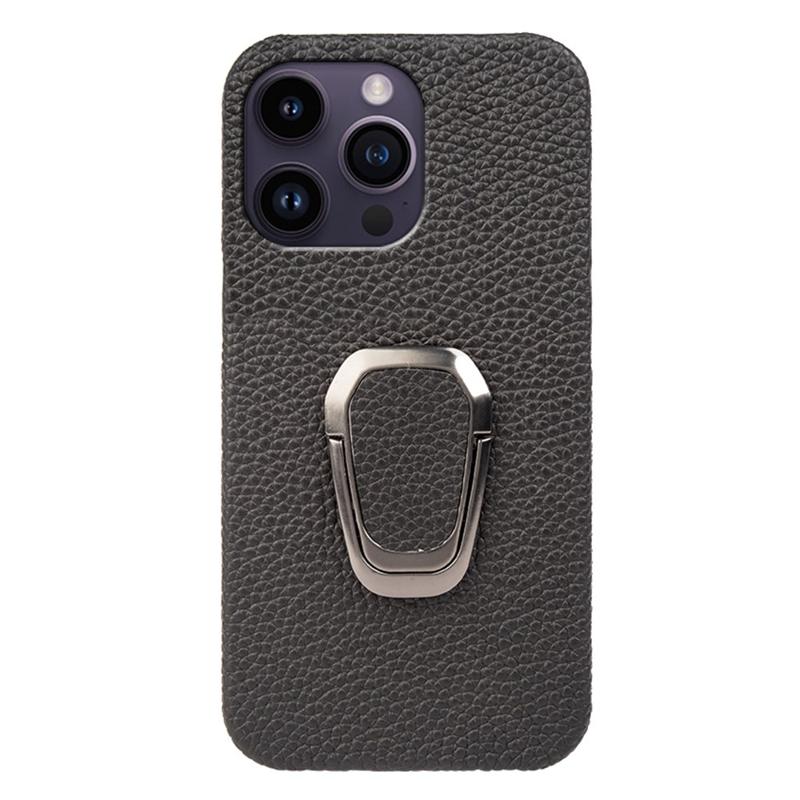 iPhone 14 Pro Max Leder Beschichtet Hülle mit Ringhalterung - Schwarz