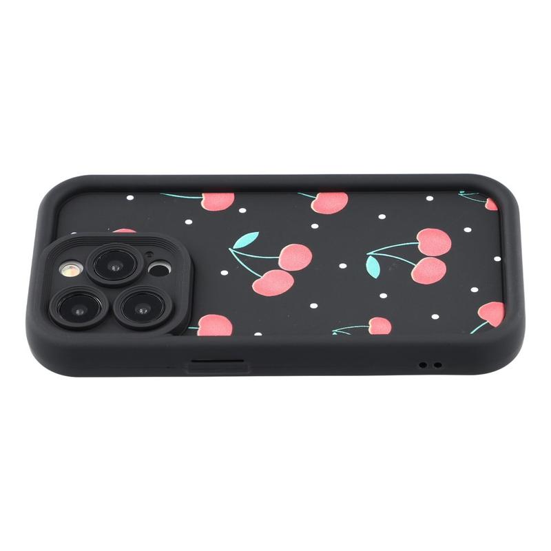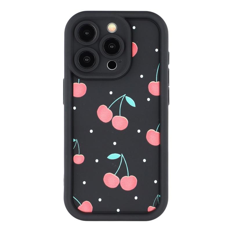 iPhone 14 Pro Max Stilvolle stoßfeste TPU-Hülle mit erhöhten Kanten - Schwarz / Kirschen