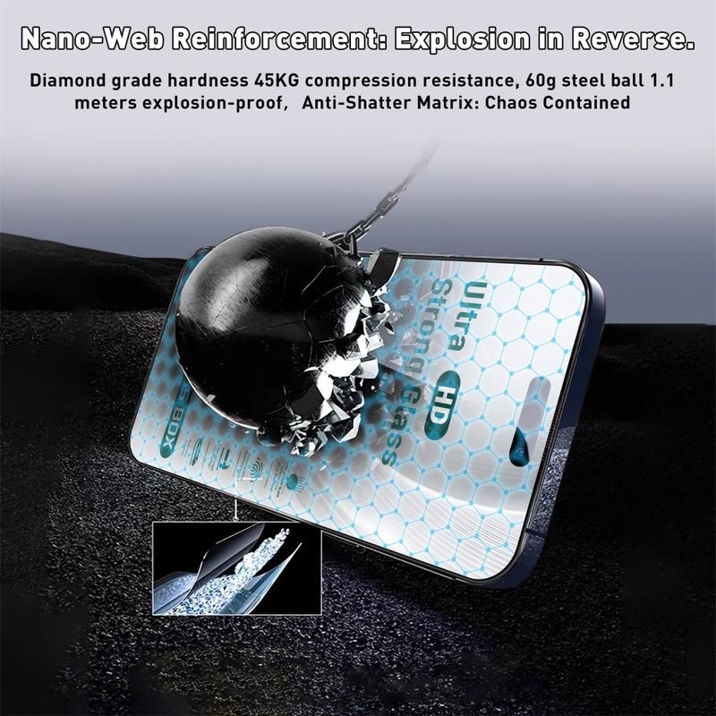 • HD-Panzerglas mit automatischer Staubentfernung und Kantenanpresswerkzeug für iPhone 14 Pro Max