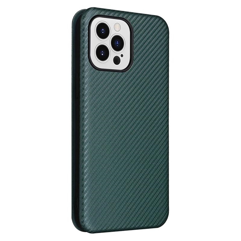 iPhone 14 Pro Flip Hülle - Karbonfaser - Grün