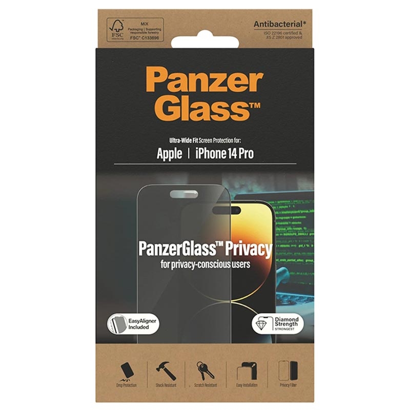 PanzerGlass Ultra-Wide Fit Privacy EasyAligner AntiBacterial Panzerglas für iPhone 14 Pro