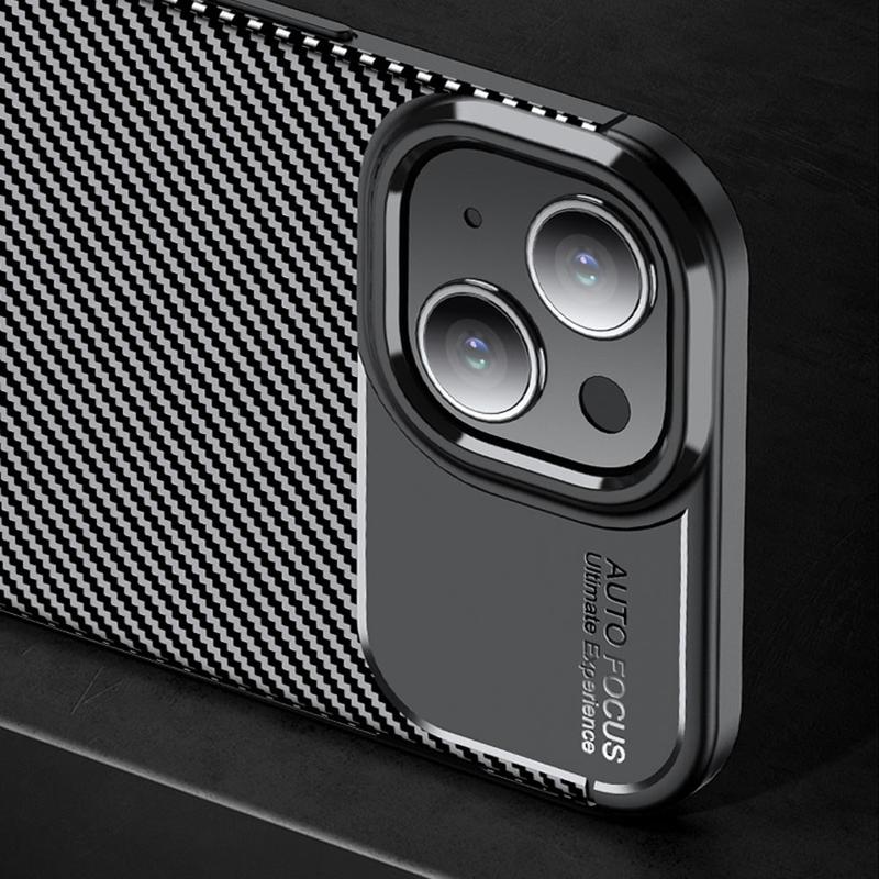 - Schützen Sie Ihr iPhone 15 angemessen mit einem einzigartigen TPU-Etui mit Kohlefasertextur.
