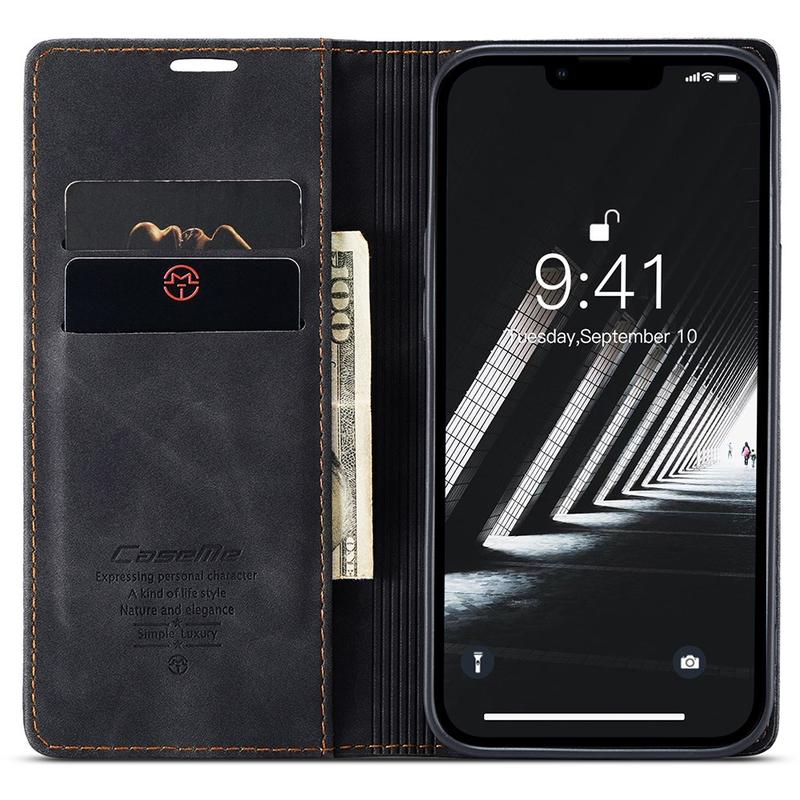 - Eingebaute Magnete halten die Caseme 013 Series Wallet-Hülle geschlossen
