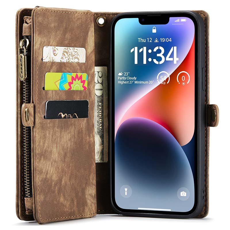 iPhone 15 Caseme 2-in-1 Multifunktions Wallet Hülle - Braun