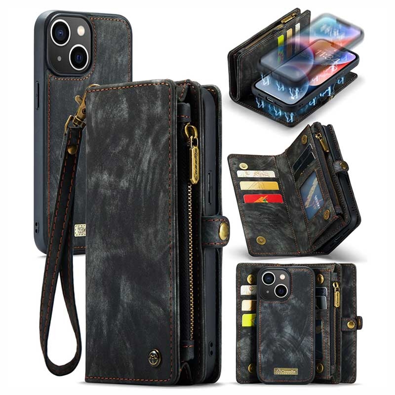 iPhone 15 Caseme 2-in-1 Multifunktions Wallet Hülle - Schwarz