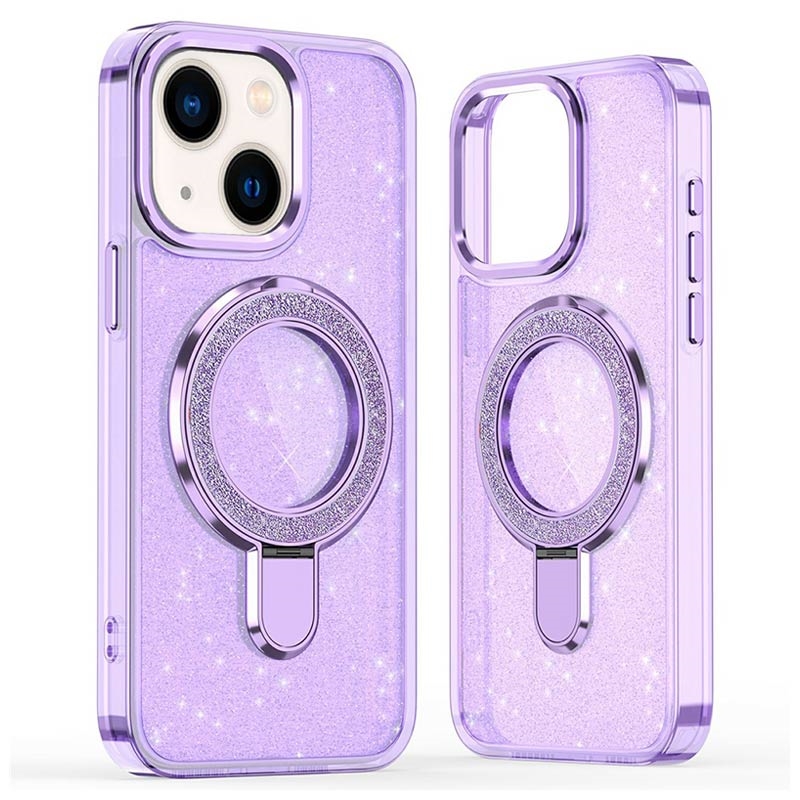 iPhone 15 Glitter Hybrid Hülle mit Kickstand - MagSafe-kompatibel - Lila