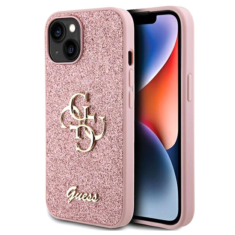 - Spektakuläre Guess Fixed Glitter 4G Metal Logo-Hülle für iPhone 15