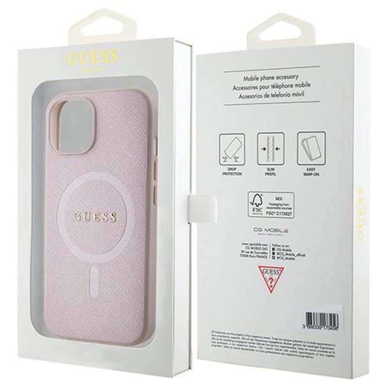 Guess Saffiano Hybrid Case für iPhone 15 - MagSafe-kompatibel