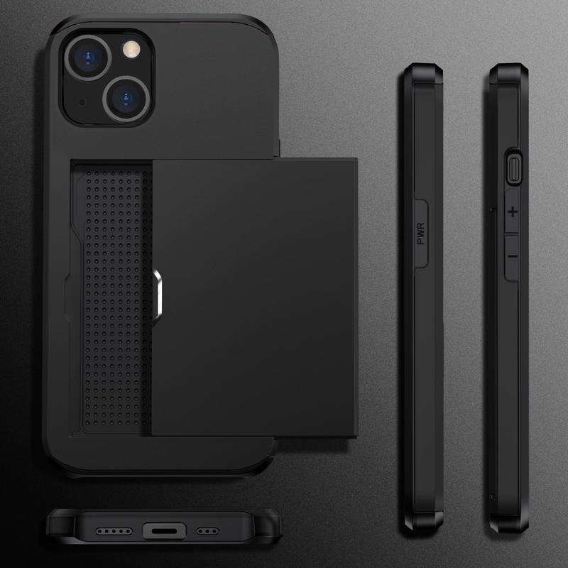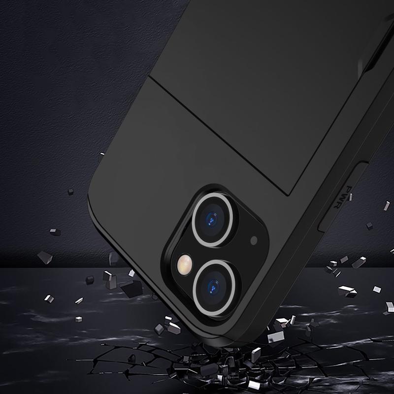 iPhone 15 Hybrid-Hülle mit Schiebekartenhalter - Schwarz