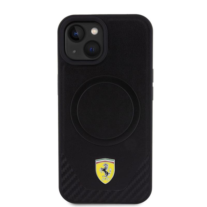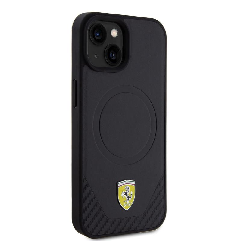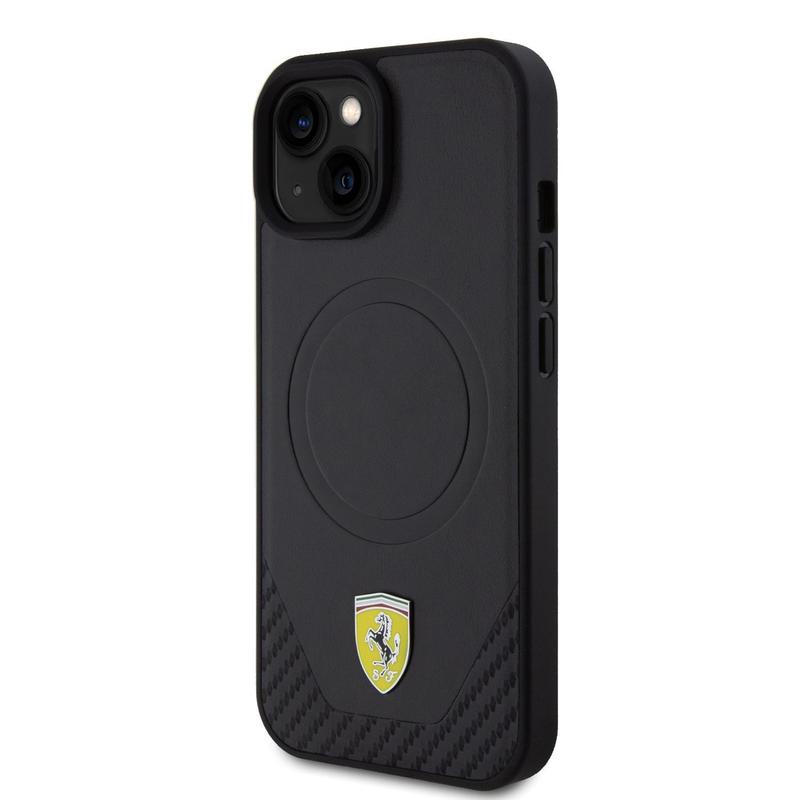 Ferrari Carbon Metall Logo Mag Hülle für iPhone 15 Plus