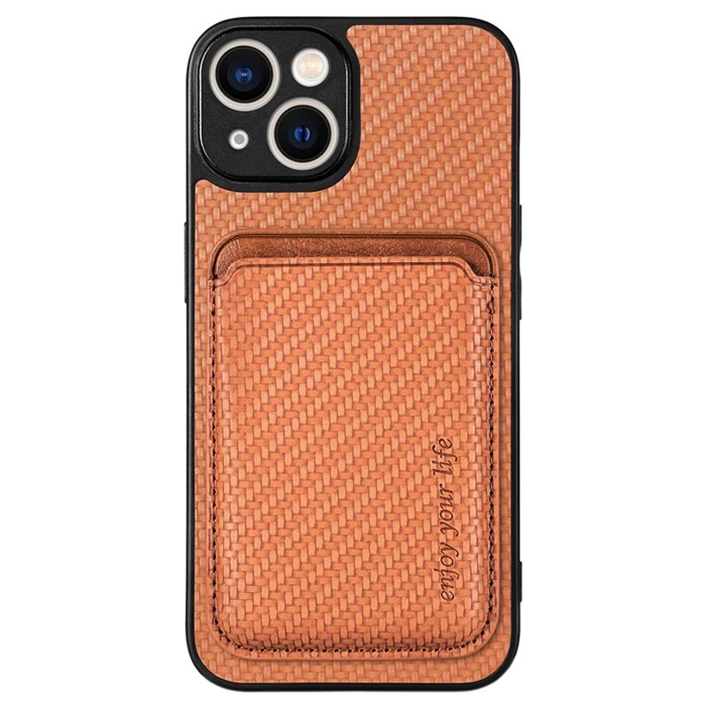 iPhone 15 Plus Cover mit Kartensteckplatz - Karbonfaser - Braun