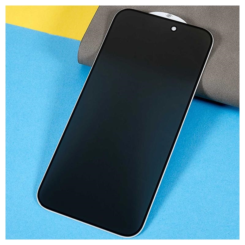 - Vollständiger Sichtschutz aus gehärtetem Glas für das iPhone 15