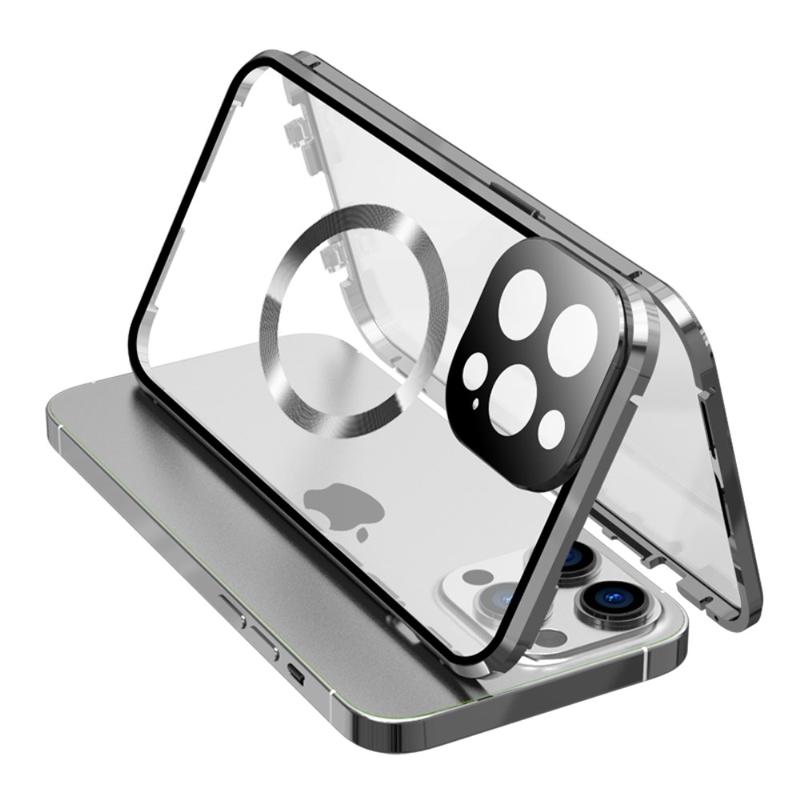 • iPhone 15 Pro Max Fall doppelseitigen HD gehärtetem Glas Telefon Abdeckung kompatibel mit MagSafe - Silber