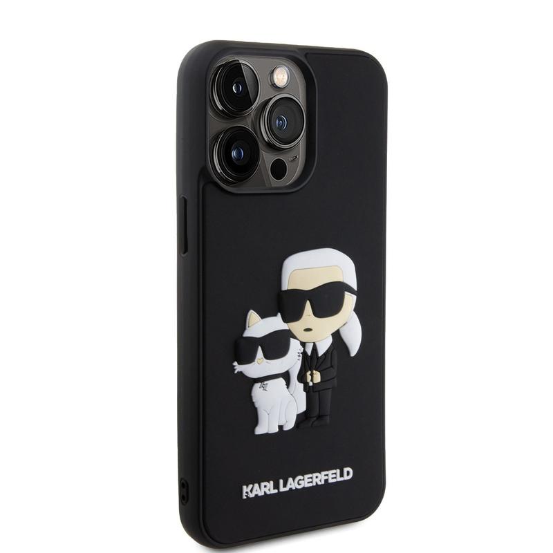 Karl Lagerfeld 3D Gummi Karl & Choupette NFT Hülle für iPhone 15 Pro Max - Schwarz