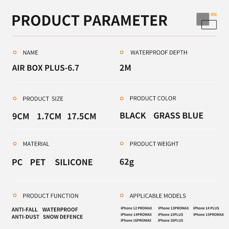Hochwertiges Material: Dieses wasserdichte Gehäuse besteht aus TPU, PC und PET und bietet hervorragende wasserdichte, staubdichte und stoßfeste Eigenschaften