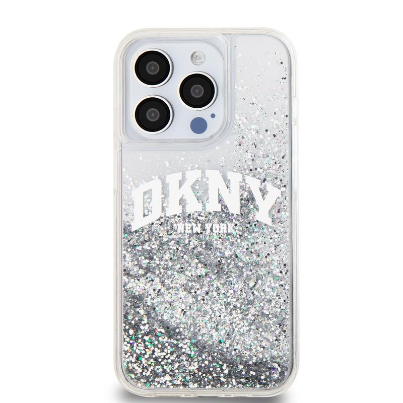 iPhone 15 Pro DKNY Liquid Glitter Arch Logo Case - Transparent