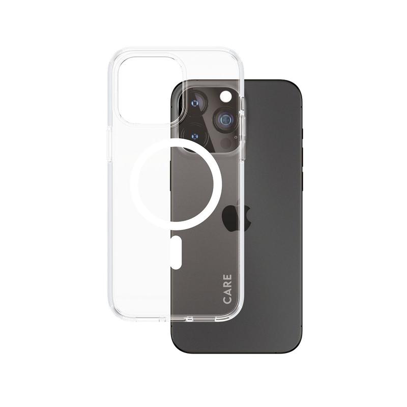 Das CARE by PanzerGlass Flagship Case für das iPhone 15 Pro Max kombiniert Stil und robusten Schutz. Die Hülle besteht aus 100 % recyceltem Kunststoff und bietet Fallschutz, Kratzfestigkeit und Stoßdämpfung in Militärqualität. Das transparente Design mit schwarzer MagSafe-Kompatibilität sorgt dafür, dass Ihr iPhone 15 Pro Max auch beim kabellosen Laden stilvoll bleibt.