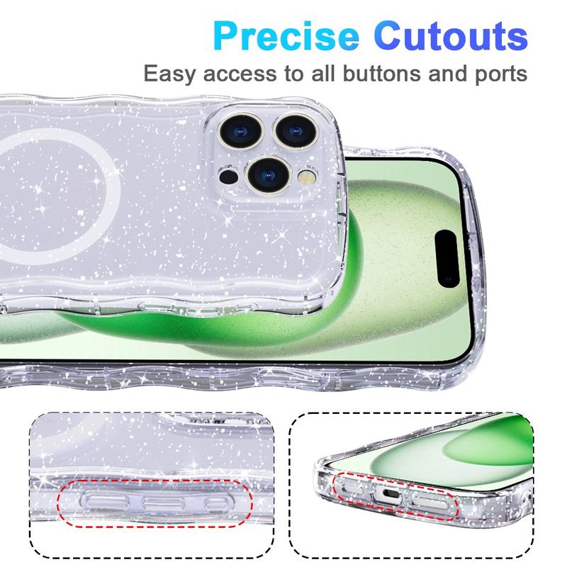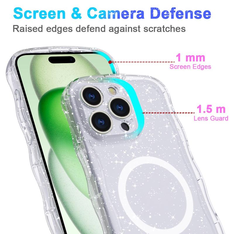 • Wave-Edge Laser Glitter MagSafe TPU Hülle für iPhone 15 Pro