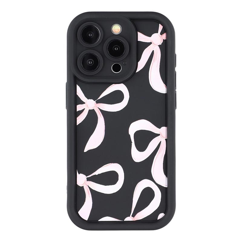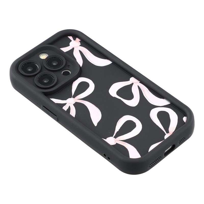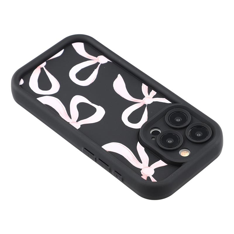 iPhone 15 Pro Max Stilvolle stoßfeste TPU-Hülle mit erhöhten Kanten - Schwarz / Große Schleife