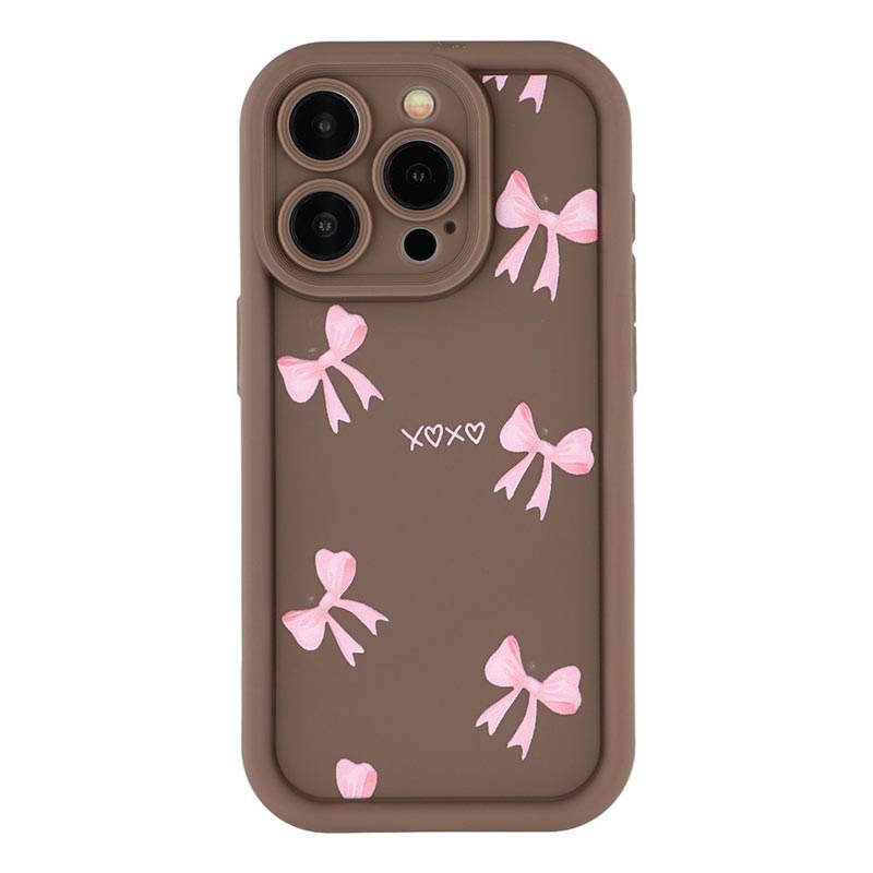 iPhone 15 Pro Stilvolle stoßfest TPU-Hülle mit erhöhten Kanten - Braun / Schleife