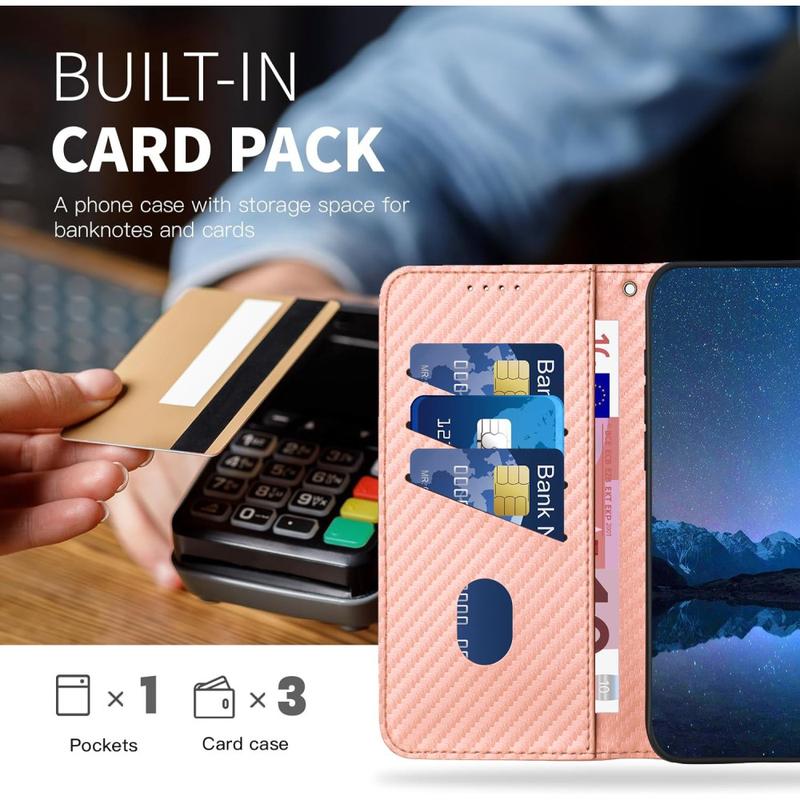 Dieses Wallet Case bietet elegantes Design, zuverlässigen Schutz und intelligente Benutzerfreundlichkeit. Die strukturierte Karbonfaser-Oberfläche sorgt für einen modernen, professionellen Look, während die innere TPU-Schicht Stöße bei versehentlichen Stürzen absorbiert. Die Freisprechfunktion und der abnehmbare Riemen sorgen für Komfort und Vielseitigkeit.