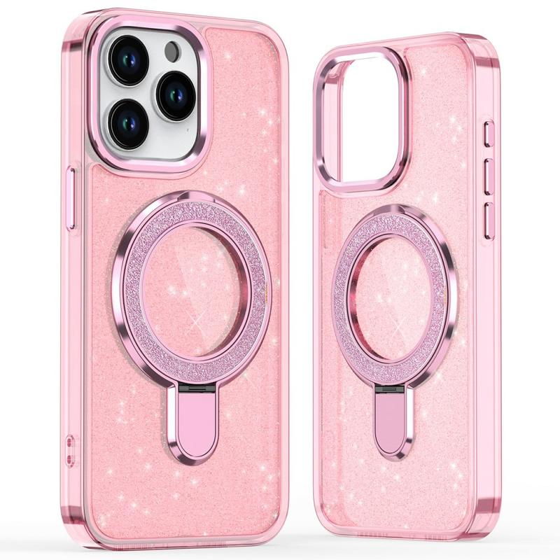 Glitter Hülle mit Kickstand für iPhone 15 Pro - MagSafe kompatible TPU + PC Hybrid Kickstand Cover