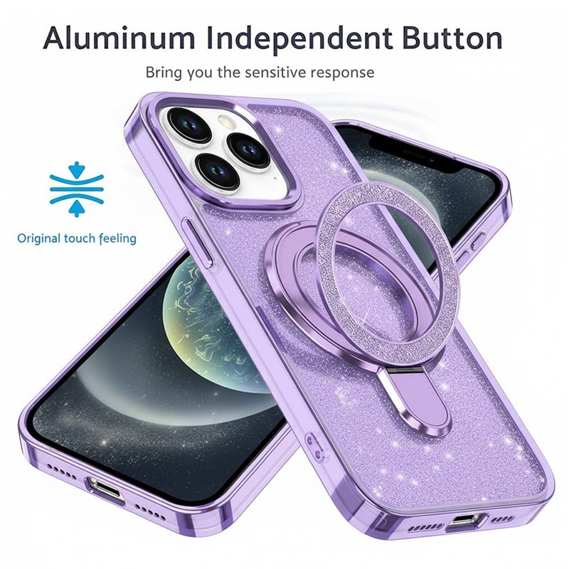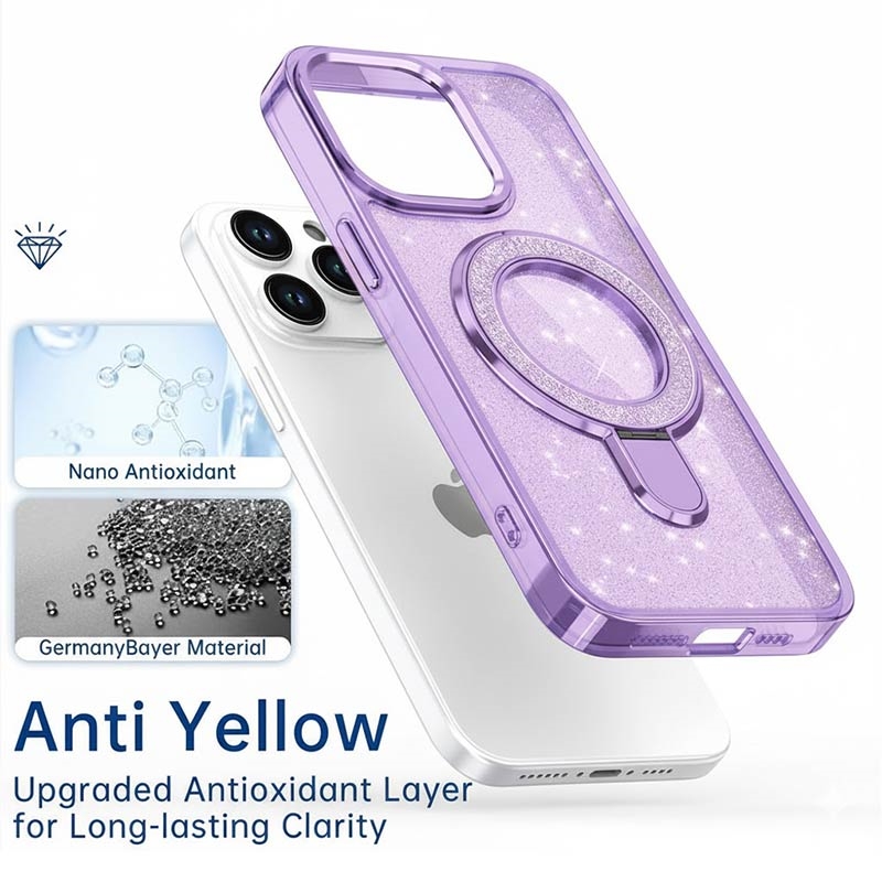 Glitter Hülle mit Kickstand für iPhone 15 Pro - MagSafe kompatible TPU + PC Hybrid Kickstand Cover