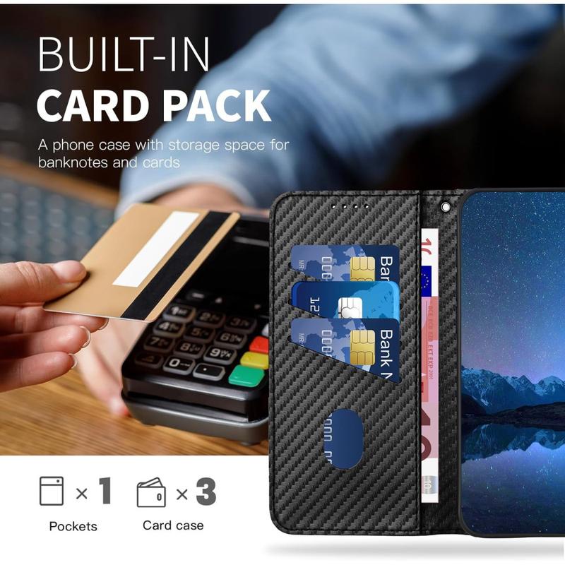 Dieses Wallet Case bietet elegantes Design, zuverlässigen Schutz und intelligente Benutzerfreundlichkeit. Die strukturierte Karbonfaser-Oberfläche sorgt für einen modernen, professionellen Look, während die innere TPU-Schicht Stöße bei versehentlichen Stürzen absorbiert. Die Freisprechfunktion und der abnehmbare Riemen sorgen für Komfort und Vielseitigkeit.