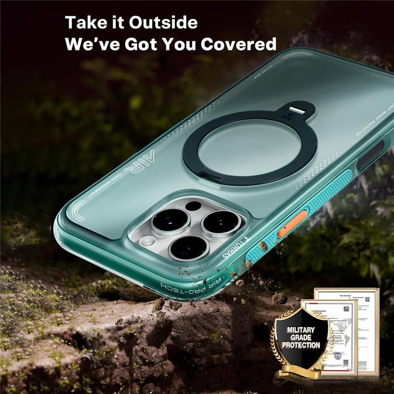 Torras Ostand Q3 Air MagSafe Case für iPhone 15 Pro Max - 360 Kickstand, AirMAX Airbag Schutz, starker magnetischer Griff