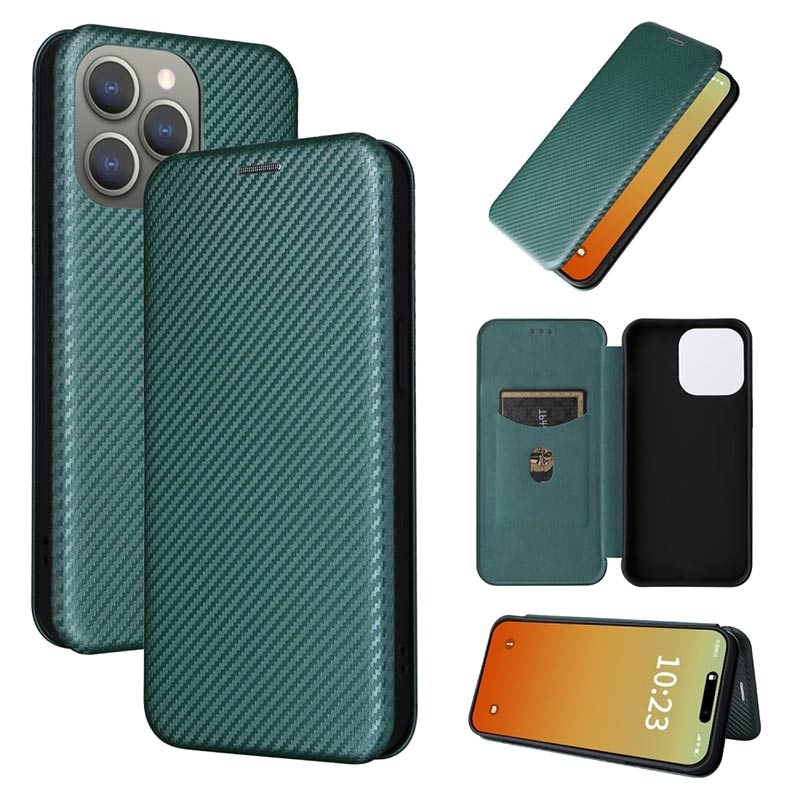 iPhone 15 Pro Flip Hülle - Karbonfaser - Grün