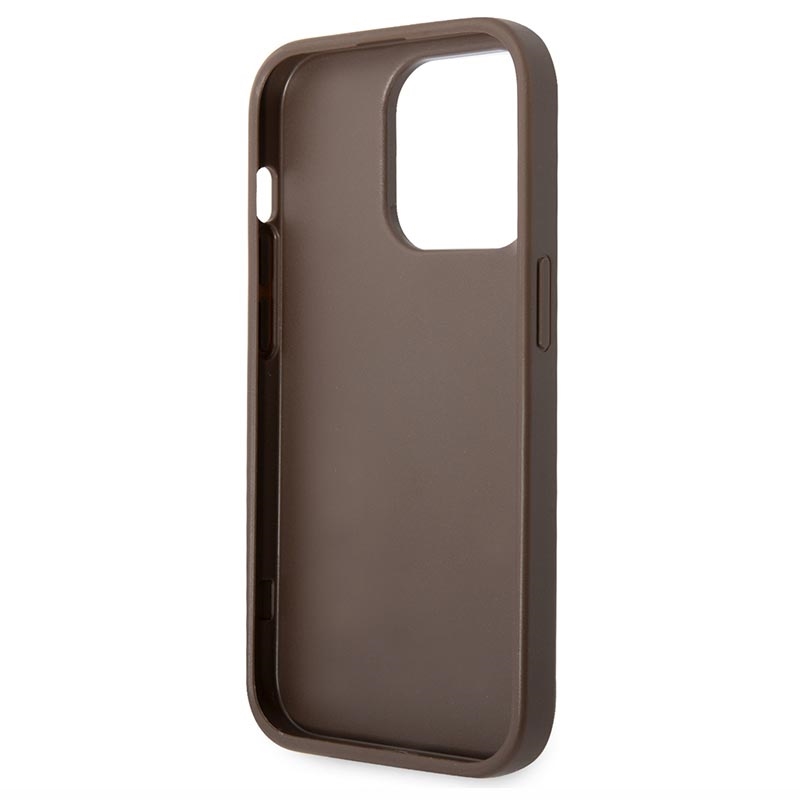Diese Hülle bietet einen großartigen Stil und Schutz vor Kratzern und alltäglichen Schäden, die Ihr iPhone 15 Pro in jedem Moment braucht, um seine Funktionalität und seine physische Form zu erhalten. Das Design der Guess 4G Big Metal Logo Hülle zeigt ein gedrucktes Guess Logo auf einer glänzenden Kunstlederstruktur auf der Rückseite der Hülle.