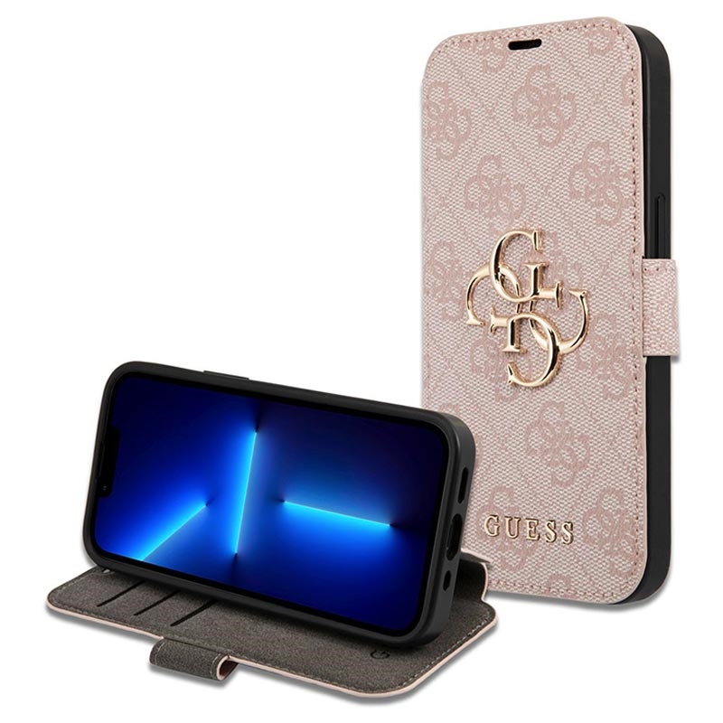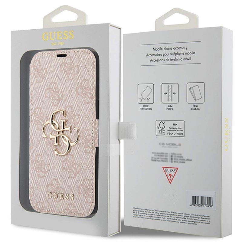 iPhone 15 Pro Guess 4G Metal Logo Flip Case - Rosa