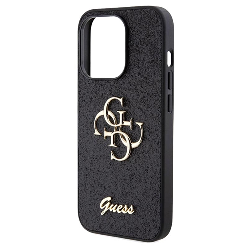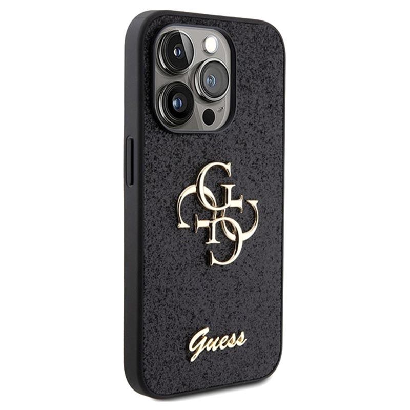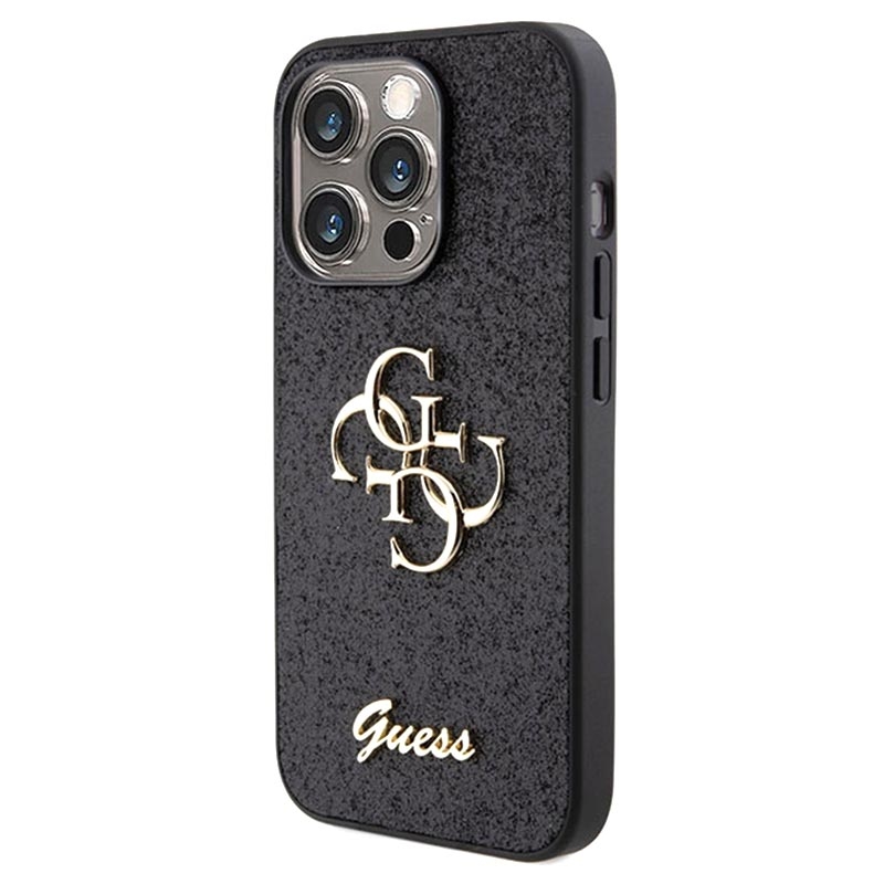 - Spektakuläre Guess Fixed Glitter 4G Metal Logo-Hülle für iPhone 15 Pro
