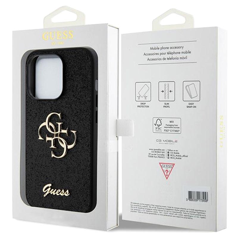 • Guess Fixed Glitter 4G Metal Logo Case für iPhone 15 Pro