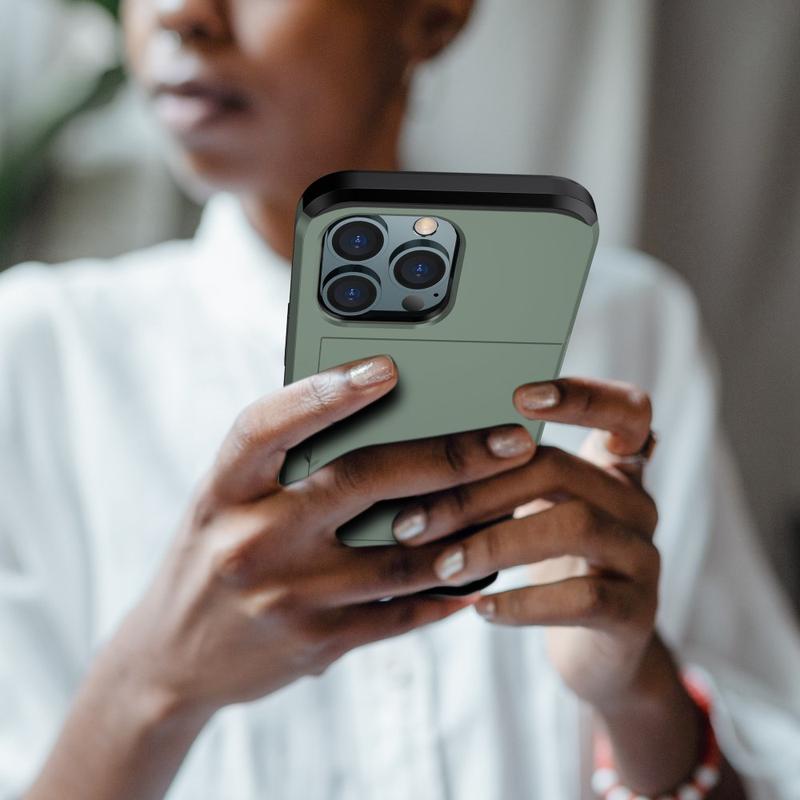 Diese Schutzhülle für das iPhone 15 Pro verfügt über einen praktischen Kartenschlitz mit Schiebefunktion, in dem Sie Ihren Ausweis, Ihre Kreditkarte usw. aufbewahren können. Darüber hinaus sorgen die Abschirmungsfunktionen dafür, dass Ihr wertvolles iPhone 15 Pro unbeschädigt bleibt, ohne dass es zusätzlich voluminös und schwer wird.